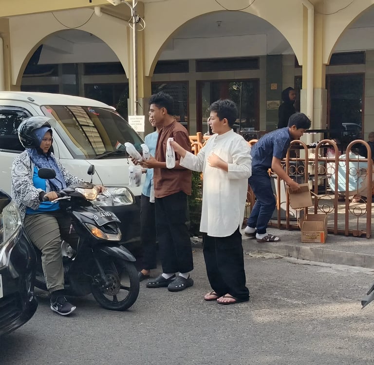 This activity took place in two main locations, Pasir Impun and Arcamanik—areas known for their high level of public activity, especially in the hours leading up to iftar (the breaking of the fast). These locations were intentionally selected to ensure that the distributed takjil could directly benefit those who were traveling or in need. Through the Yuk TU Berbagi program, students were not only involved in the distribution process but also participated from the very beginning. Donations collected from students throughout Ramadan were gradually gathered and then managed into takjil packages ready to be shared with the community.