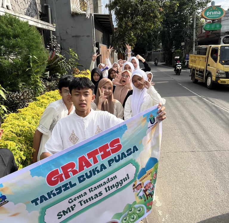 The month of Ramadan is always a meaningful moment to cultivate compassion and a spirit of sharing within the community. In line with this value, students of SMP Tunas Unggul carried out a social initiative by distributing 1,000 takjil packages to the public on March 12, 2026.