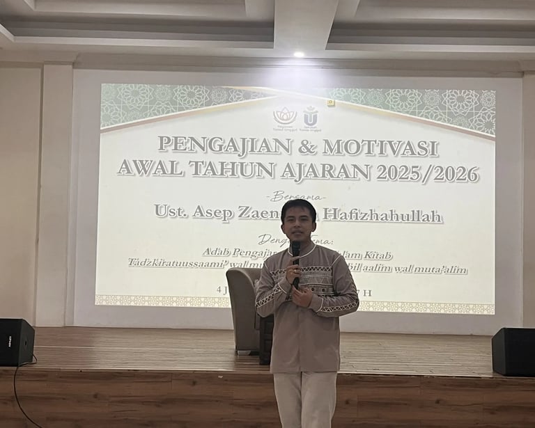 Bandung, July 4, 2025 — To mark the beginning of the new academic year, Tunas Unggul School once again held its monthly spiritual reflection session, reaffirming its commitment to value-based education that emphasizes not only academic excellence but also the development of character and spirituality. This month’s session carried the theme “The Etiquette of Teachers and Students According to Classical Islamic Texts”, delivered by the esteemed Ustadz Asep Zaenudin Hafizhahullah, a well-respected Islamic scholar and educator.