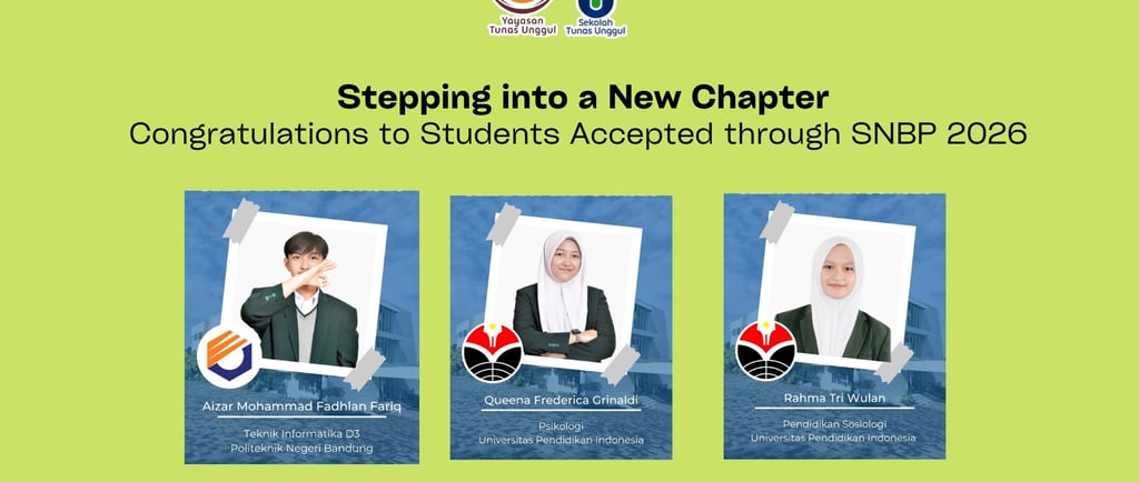 Joyful and proud news comes from SMA Tunas Unggul and Binar Ilmu. This year, through the Seleksi Nasional Berdasarkan Prestasi (SNBP) 2026 pathway, outstanding students have once again achieved remarkable success by being accepted into their dream public universities.