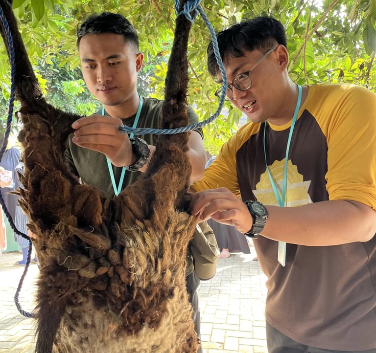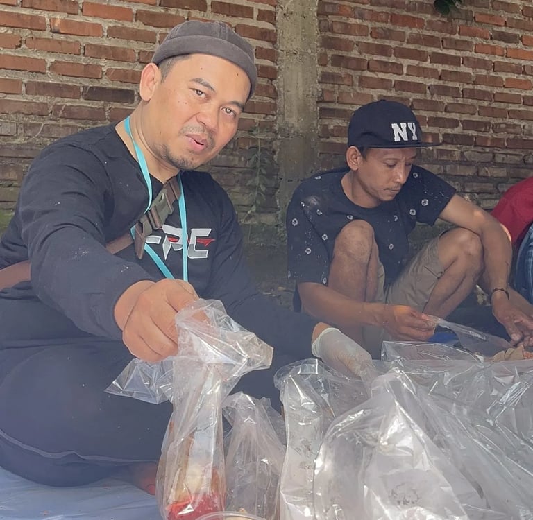 The slaughter process was carried out in two phases to ensure inclusive participation and orderly distribution. The first phase took place on Friday, June 6, 2025, across three locations: Tunas Unggul School, Binar Ilmu School, and Tunas Unggul High School. At Tunas Unggul School, 3 cows and 2 goats were sacrificed; at Binar Ilmu School, 1 cow and 1 goat; and at Tunas Unggul High School, 1 goat. Altogether, 600 meat packages were distributed to residents around the schools and partner communities.